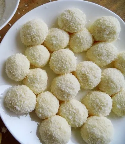 - Poté tvarujeme do kuliček a obalíme ve zbytku kokosové moučky