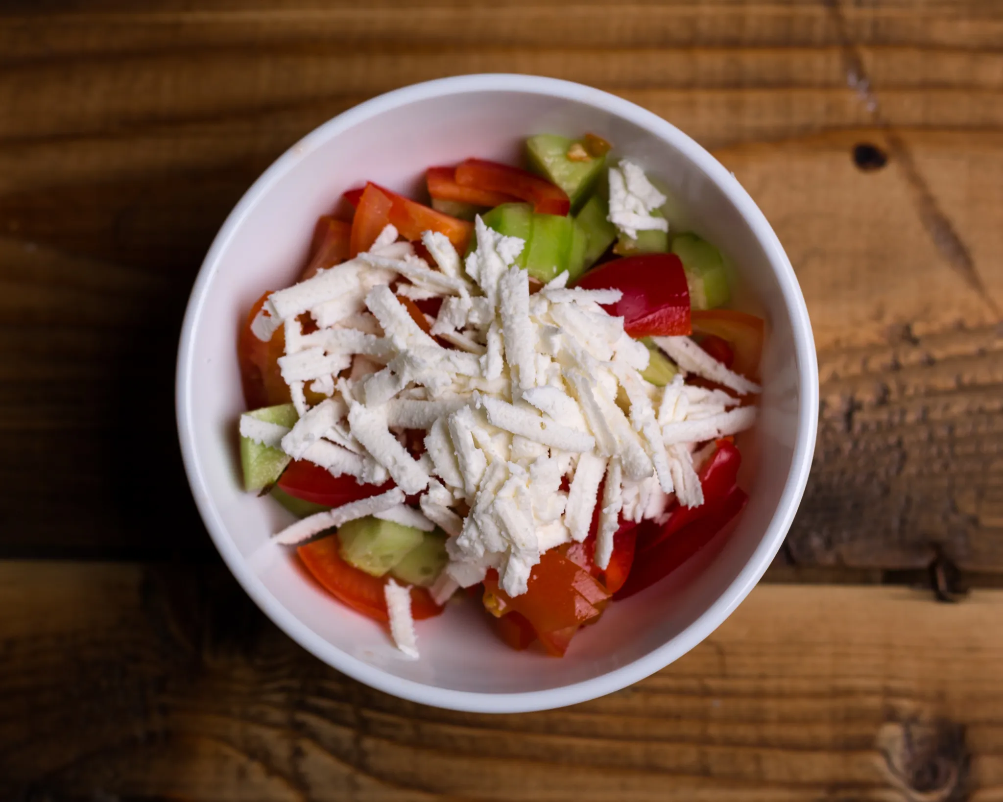 Šopský salátDoba přípravy 10 min ŠtítkysalátvegetariánskéIngrediencePočet porcí1kssalátová okurka2ksrajčata1ksžlutá nebo bílá paprika200gbalkánský sýr1lžíceolivový olej2lžičkyvinný ocetPostup Vše nakrájíme na kousky a smíchame Přidáme olivový olej, vinný ocet a opepříme Naposledy upraveno:24. 3. 2021