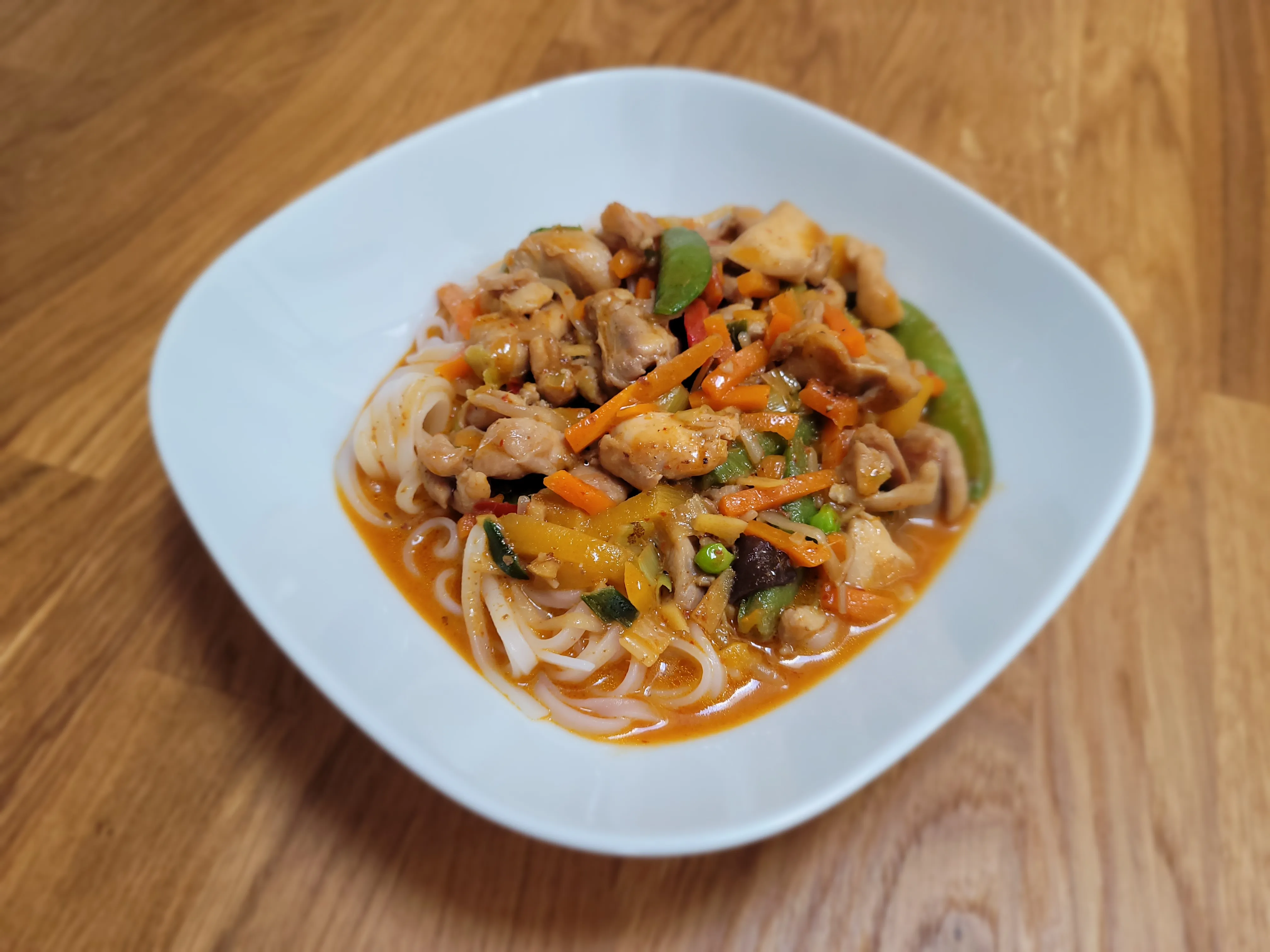 - Přidáme kuře, osolíme, opepříme a zprudka osmahneme